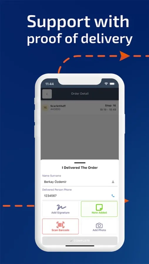 • Proof-of-delivery through on-screen signatures, notes and photos