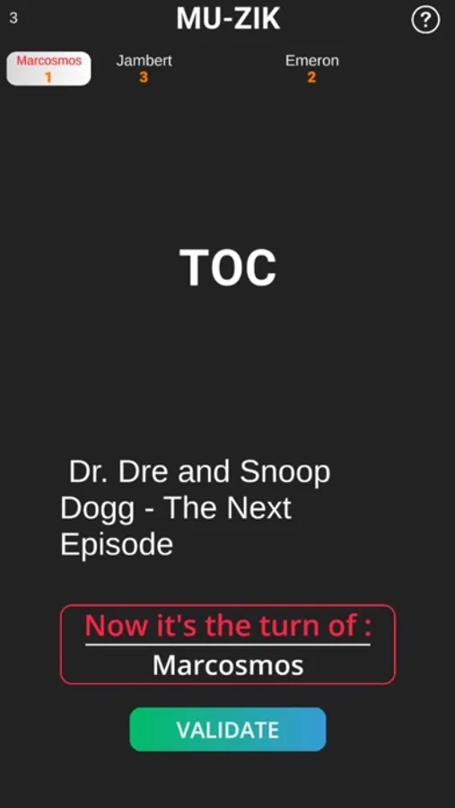 Each round you will have to choose a music from a random list, then try to make it guess using only syllables (ex: Tic-Pouf).
