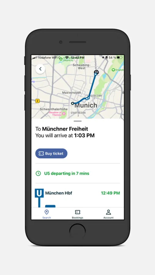 Überregional mobil: MVG Deutschland liefert Fahrplanauskünfte inklusive Fernverkehr und ein multimodales Routing mit Bike-, Scooter- und Carsharing innerhalb der teilnehmenden Regionen.