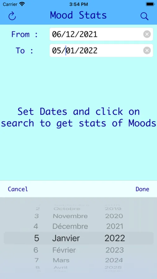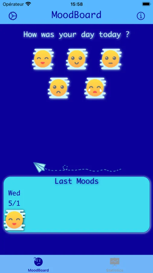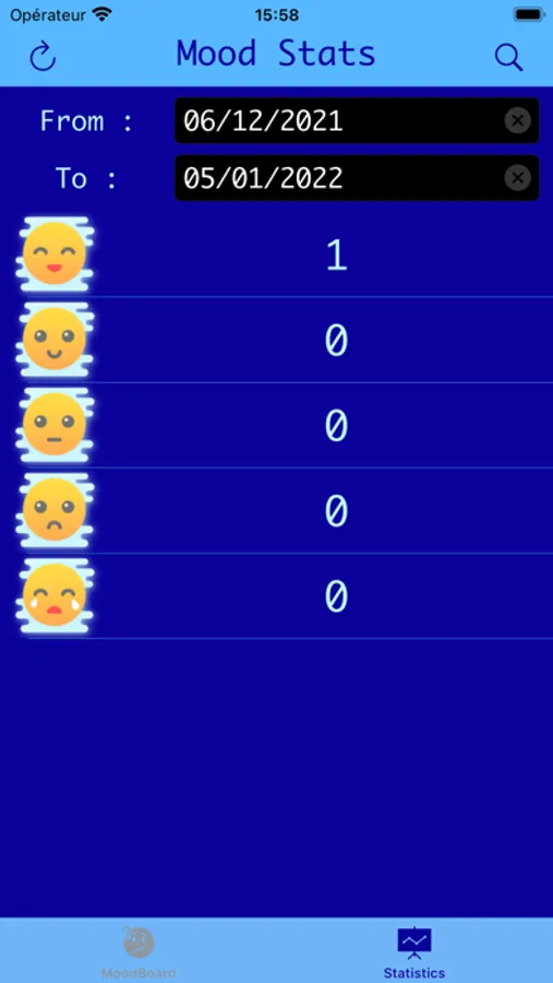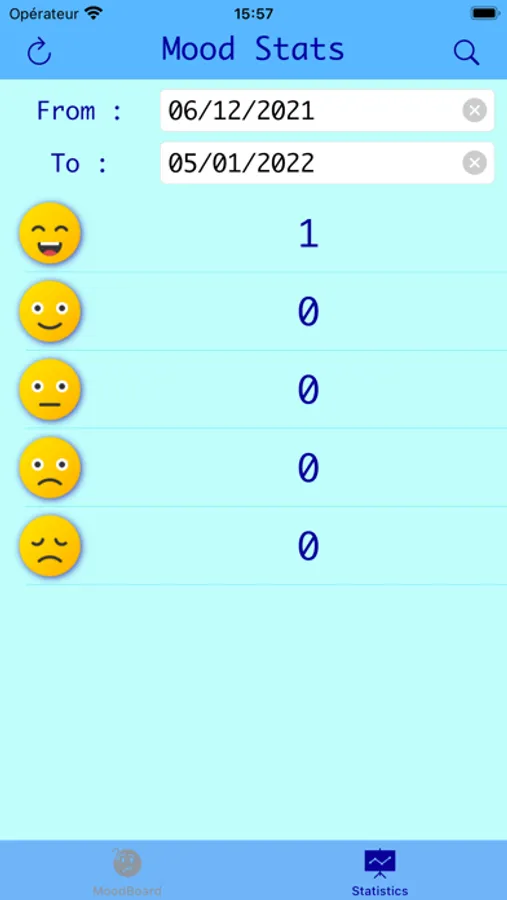 Vous pourrez obtenir des statistiques au fil du temps afin de voir l’évolution de vos humeurs au bout de quelques jours et ensuite quelques semaines. La recherche de statistique est définie sur 30 jours afin d’avoir un visuel mensuellement.