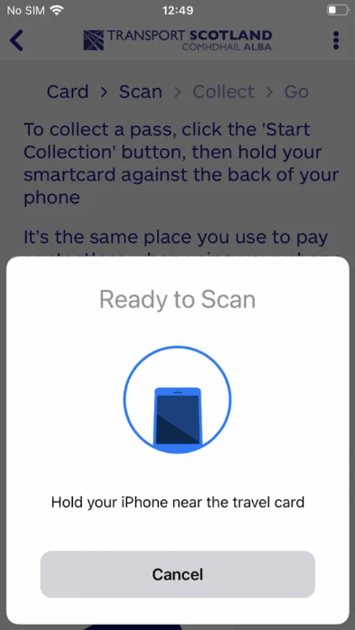 The Transport Scot Pass Collect App is self-explanatory and shows you how to read a smartcard or collect a bus pass in a few easy steps. It also has links to more information online and contact details if you need more help. It doesn’t collect any personal data and is free to use.