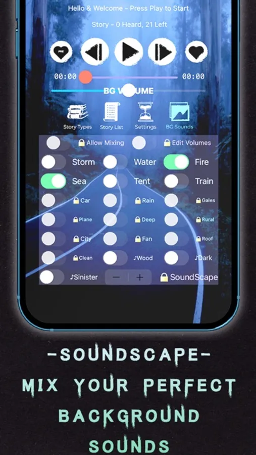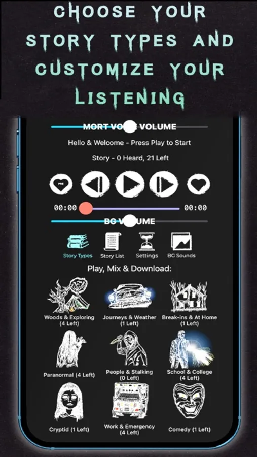 Set your background image, browse stories or just play them randomly, you can customize your perfect experience.