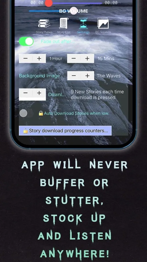 The app will never buffer or stutter and does not need a data connection to work - stock up on your stories at home and listen anywhere - even at the top of a mountain!