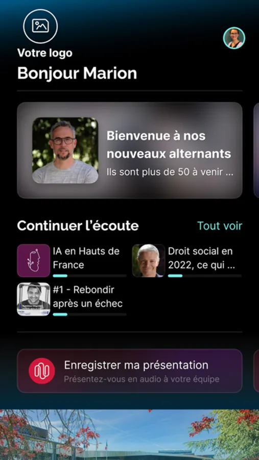 Dans l'application, les contenus prennent place sous la forme de podcasts ou de masterclass. Les équipes peuvent également prendre la parole pour diffuser leur propres audios, qu'il s'agisse de se présenter ou de mettre en avant les actualités de leur service.