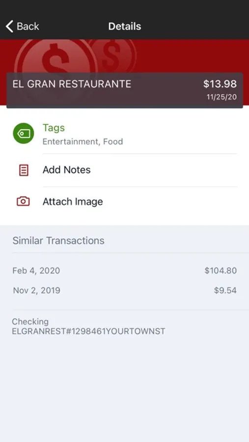 • Keep your transactions organized by allowing you to add tags, notes and photos of receipts and checks.