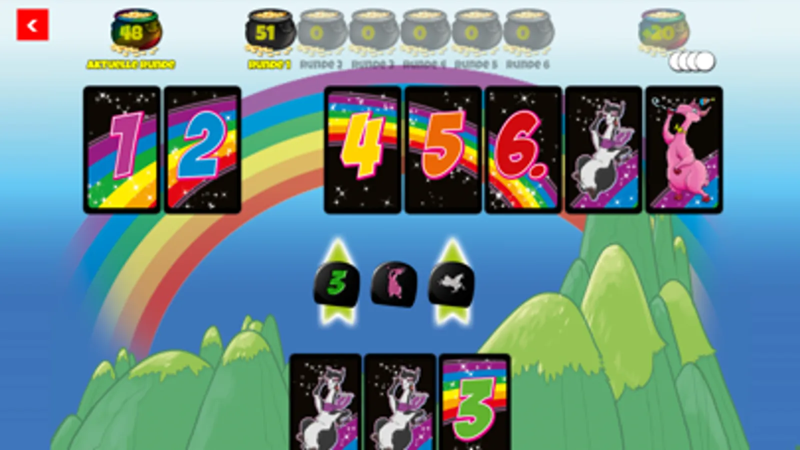 But the app contains even more: The two spin-offs "LAMA Party Edition" and "LAMA Dice" are also included.These follow the same simple basic principles as the basic game, but offer new game elements and thus even more variety. Play all 3 modes with up to 5 AI opponents or with friends and family via Pass & Play. Of course, you can also mix both in one game.