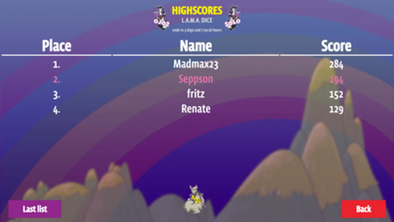 As a special bonus, the completely new solo mode for "LAMA Dice" is included as a world premiere. Set yourself the special challenge of achieving the best possible result. To achieve the highest possible scores, however, you must first unlock the 3rd level by achieving good results in the previous levels. If you succeed in this, the way to the top of the global high score list is open to you!