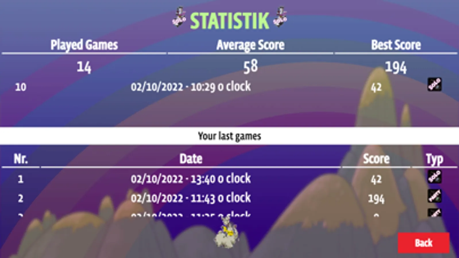 - 4 game modes with separate scores