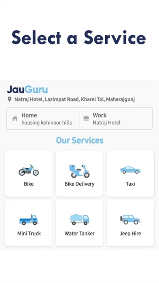 Pick up your phone and log in to the ultimate mobility platform 'JauGuru.' It aims to simplify the everyday journey by enabling users to connect with the service partner for the sole purpose of providing rides or making deliveries. JauGuru is entirely made from scratch in Nepal by our brilliant developers, which includes ride options like Bike, Bike delivery, Mini Truck, Taxi, Water Tanker, and Jeep Hire to get you to your destination. Pick a ride based on your preferences and price range. Get a ride instantly and get picked up at your doorstep. Verify each other and start the ride. The map in the application will help the driver to take the user to their destination. An SOS button in the app can also be used in an emergency situation. Don't limit yourself from the possibilities. Earn with the vehicle you own and be a JauGuru partner. Get instant payments.