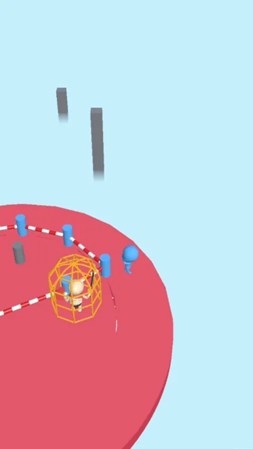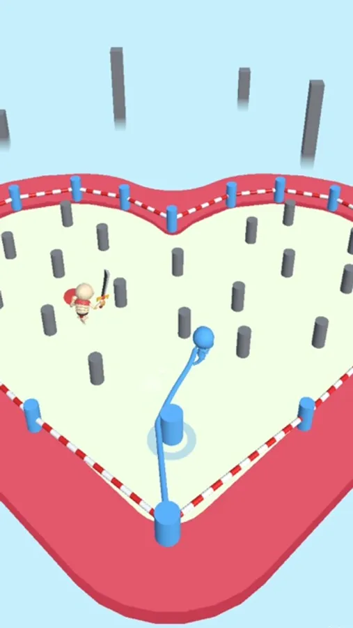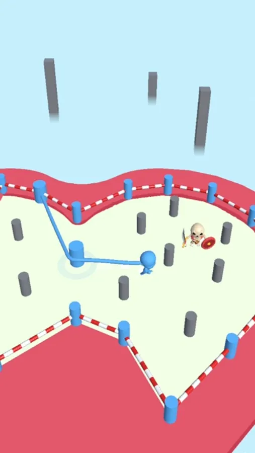 Tie the rope around the pins and draw your territory. By gaining more territories, leave less territory for the enemy when it bounces back and forth inside the ring. Squeeze it enough t o capture it!