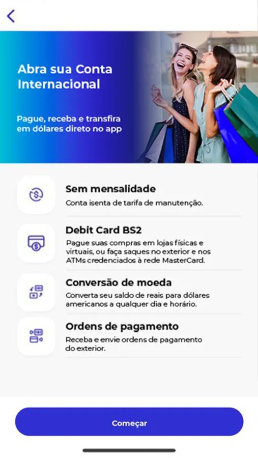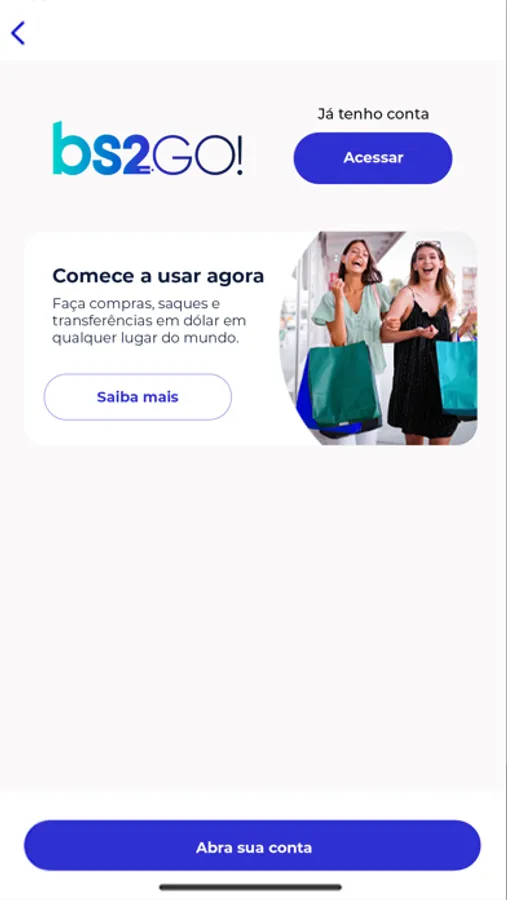 BS2 GO! A conta internacional mais completa que você já viu. Baixe o app e abra sua conta!