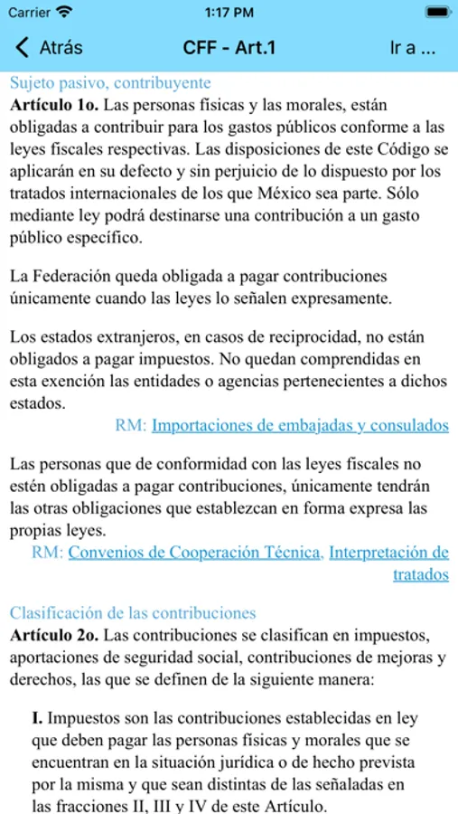 Esta aplicación permite consultar de forma rápida las principales leyes fiscales mexicanas vigentes en el año 2022, es posible navegar nivel por nivel sobre el índice de ley o ir de forma directa a un artículo a través de la función de salto directo o haciendo clic sobre un vínculo siempre y cuando esté disponible.