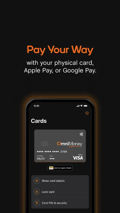 OmniMoney by Boost Mobile gives you the power to make the most of your money, without the downsides of traditional banking. Our easy-to-use mobile app keeps you in control from wherever you are, letting you manage your account, utilize direct deposits, make purchases, send money to friends and family, set up your digital card, see all your latest transactions, and more. Download today for a smarter way to spend and save.