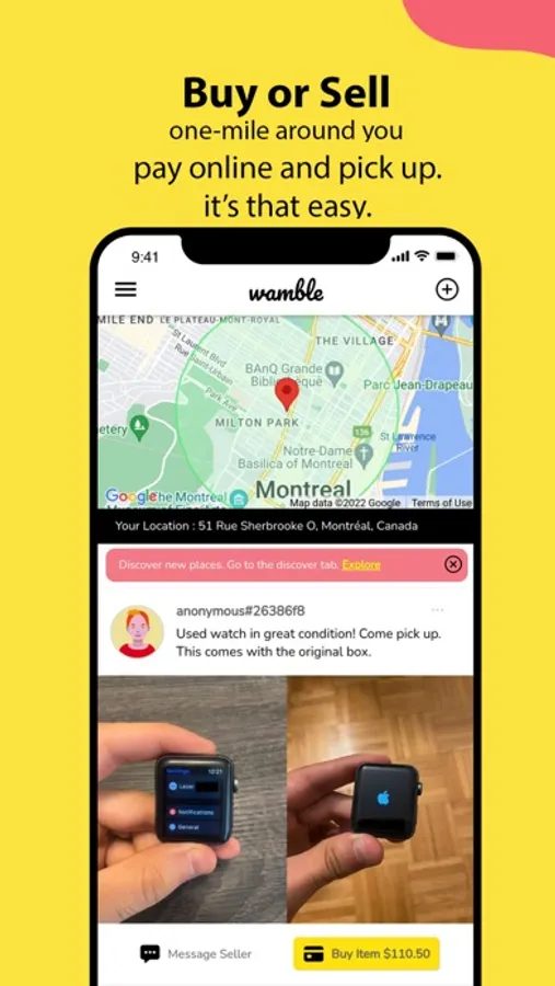 Put your newly made products, used products, or brand new services on Wamble. People one-mile around you will see the offerings!