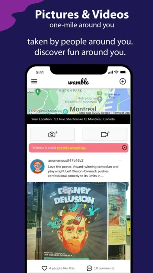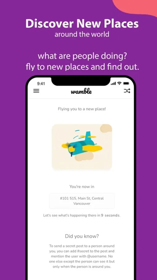 Wamble is THE destination for anonymously discovering everything one-mile around you. Explore and fly to places around the world.