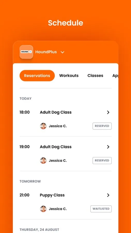 For members of HoundPlus to reserve their place in a class, sign up for gym events, and general account management like updating headshots and credit card on file.