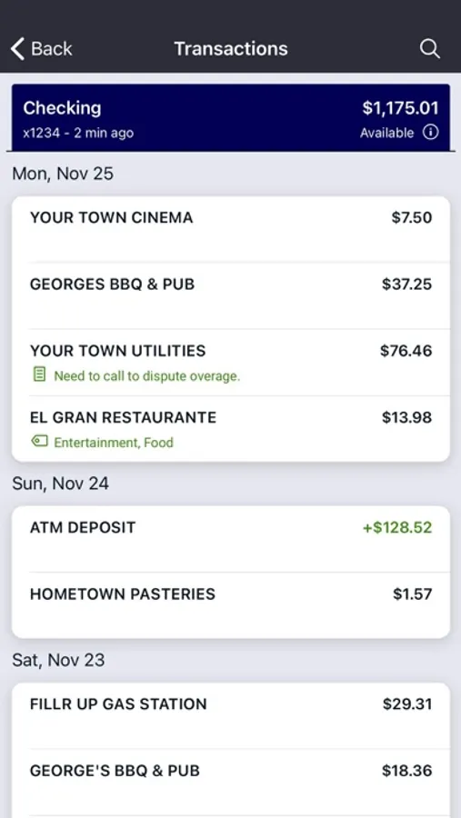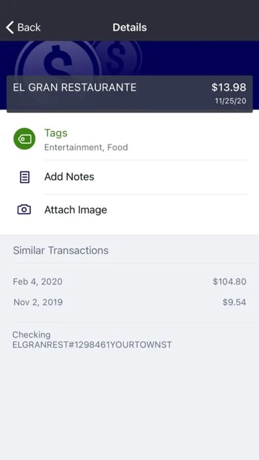 Add Tags, Notes, Images & Geo-Information: By enhancing transactions with custom tags, notes or photos of a receipt or check, you have the ability to stay organized and find exactly what you’re looking for when searching through your finances.