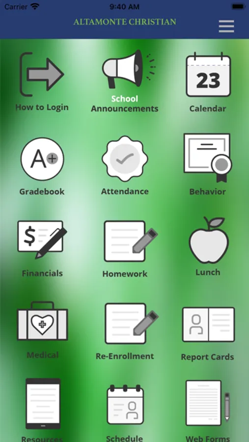 Welcome to the Family App for families of Altamonte Christian School in Altamonte Springs, FL! This app is a one-stop-shop for our school community, with anytime, anywhere access to all the tools, content, and communications parents need to stay connected and engaged. School information available in one easy to access place includes Announcements, School Calendar, Student Grades and Homework, Family Accounting, Giving Options, and much more!