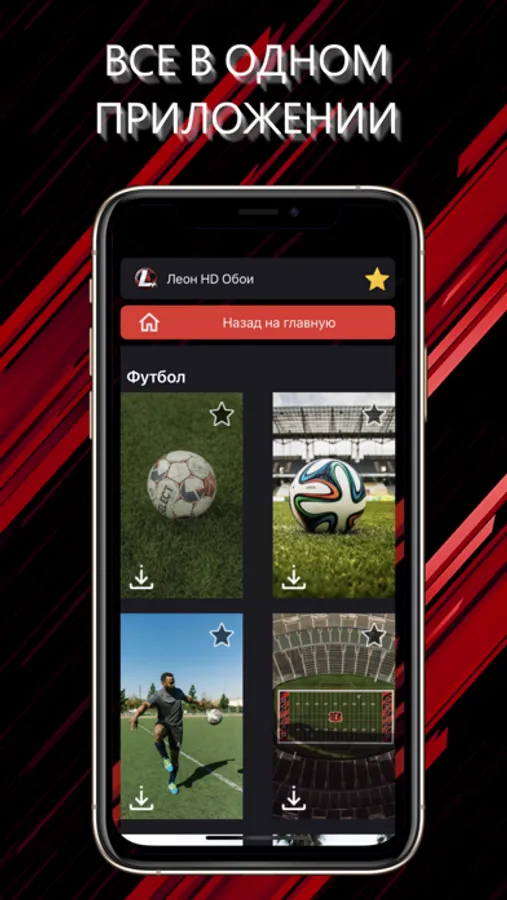 Данное приложение позволяет в пару кликов получить пользователю Леон - уникальные обои на свой мобильный телефон. В нашем приложении есть такие категории как: Обои с футболом, баскетболом и так далее. Всего представлено 10 различных категорий.