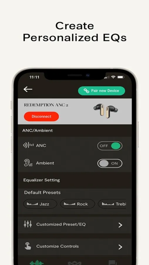 Explore classic EQ profiles like Bass Boost and Acoustic to find the perfect balance tailored to you, or create your own custom EQ to personalize your experience.