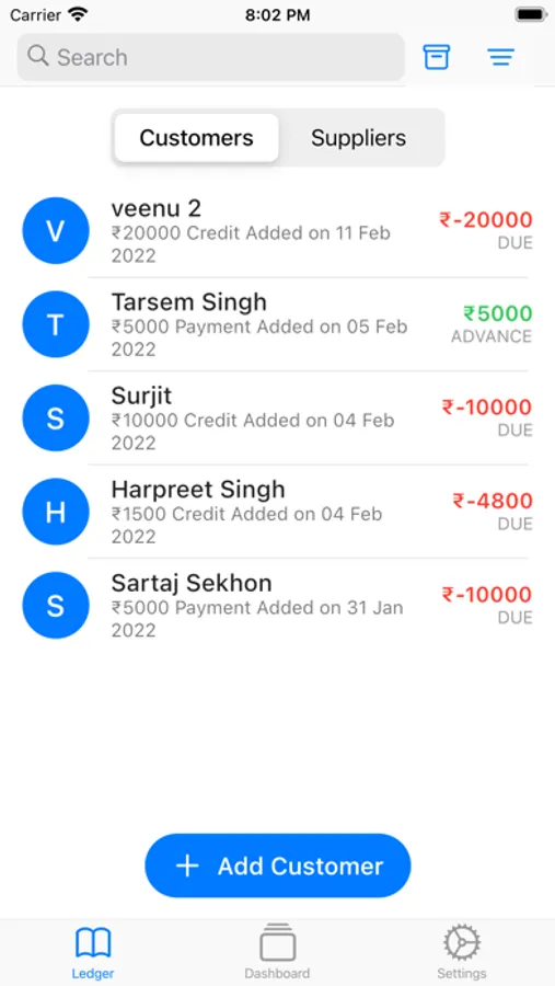 It will become very convenient to managing entries of your customers, track each entry made, get reminders forgiven due date, get a complete summary of all the customer's entries (debit and credit transactions) at one place with a balance sheet and become fearless of forgetting or losing information.