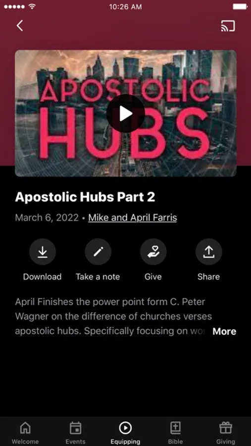 This app will help you stay connected with the day-to-day life all of the ministries aligned with LivingStones Communities. With this app you can: watch or listen to past messages; stay up to date with push notifications; share your favorite messages via Twitter, Facebook, or email; and download messages for offline listening.