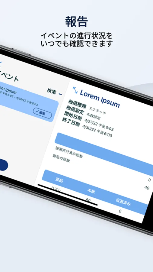 イベントの期間、抽選の種類、賞品番号などの詳細をイベントに簡単に追加できます。