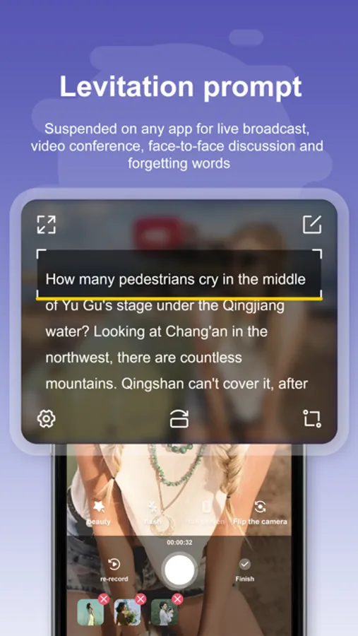 Teleprompter is a teleprompter tool that can be suspended on the software. You can use it with other shooting software, which is more professional and friendly