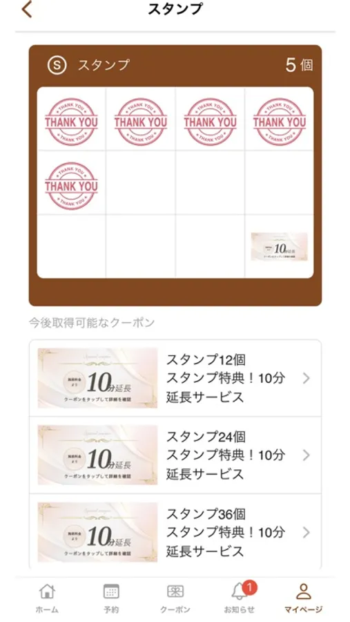 ご来店スタンプをためるとお得なクーポンが発行されます(ご利用条件がある場合がございます)