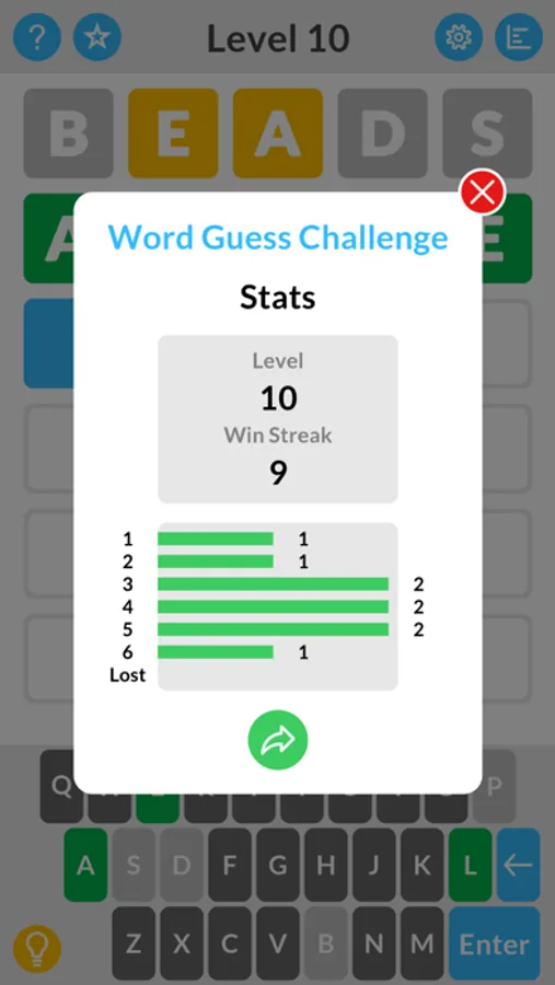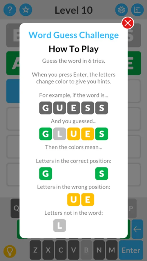 Guess the word in 6 tries or less! The letters in your guess change color to give you clues. Keep track of your stats and compete with your friends! Includes the ability to select individual letters, dark mode, and hints.