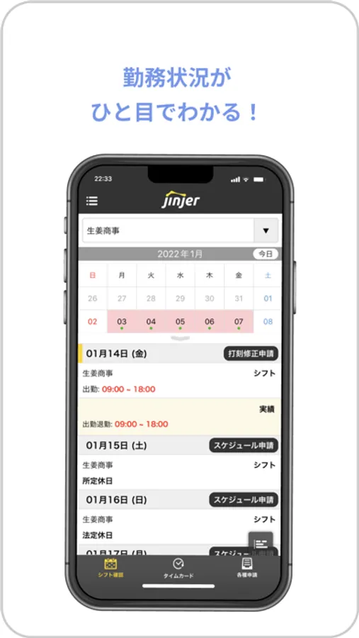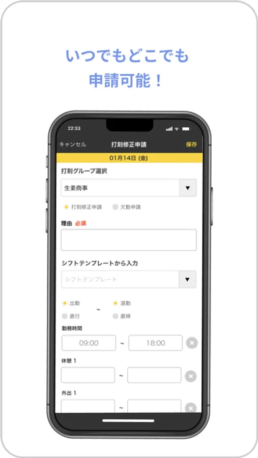 打刻修正申請や休暇申請ができます。