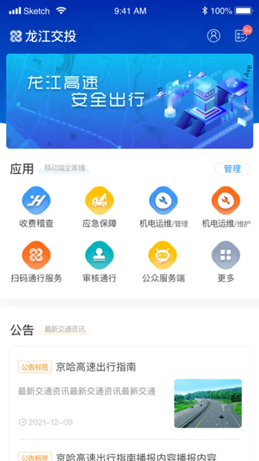 龙江智慧高速移动端应用集应急、稽核、收费、运维等相关应用于一体,旨在为高速运营单位提供统一的业务办公应用的集成入口,从而提升高速运营单位的办公效率,以及高速智慧化管理能力;