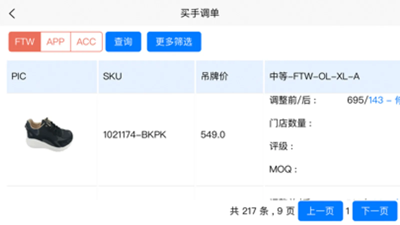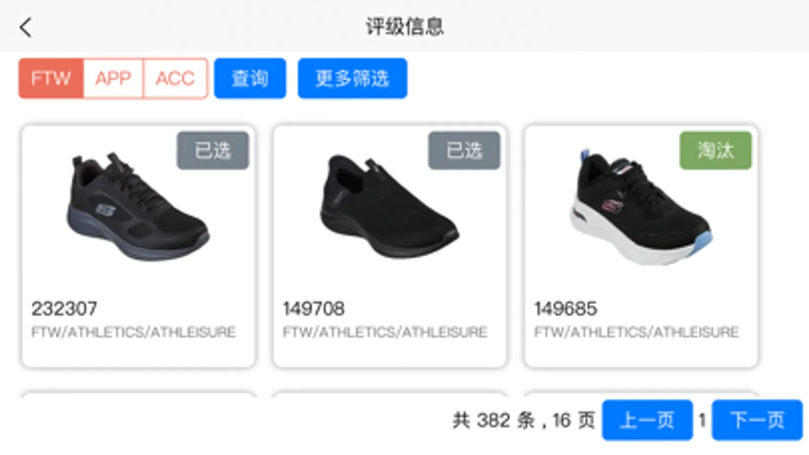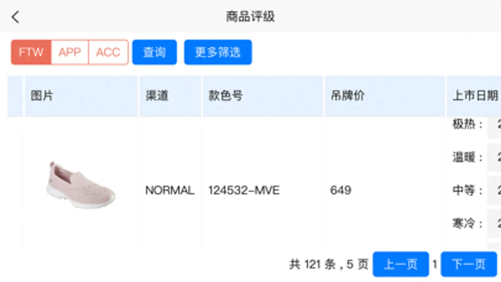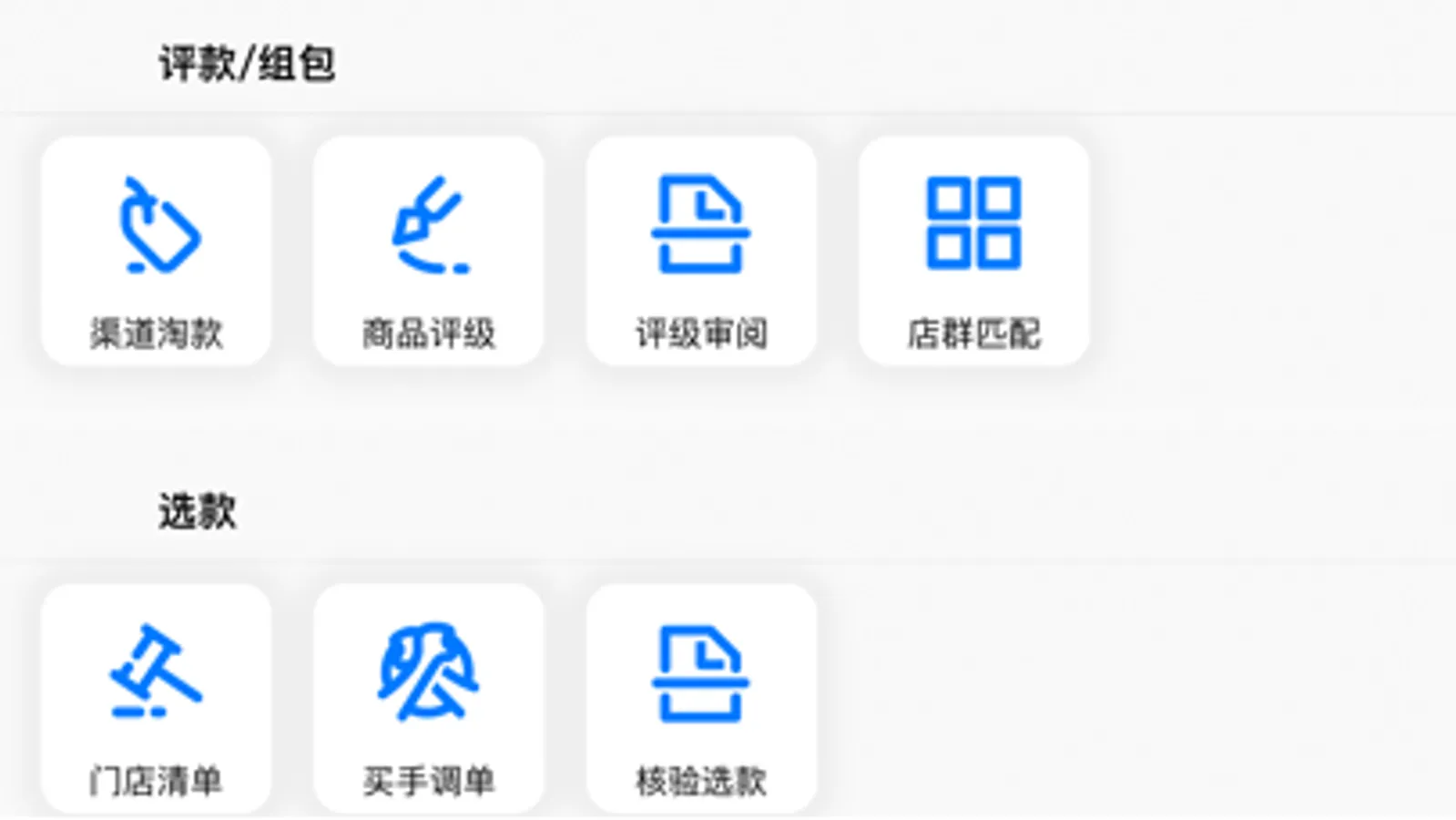智能产品选款系统移动终端:包含淘款、评级、调单选款、拆码、分析等模块功能,配合季中滚动OTB实现供销计划设定和预测,串联供应链流程。