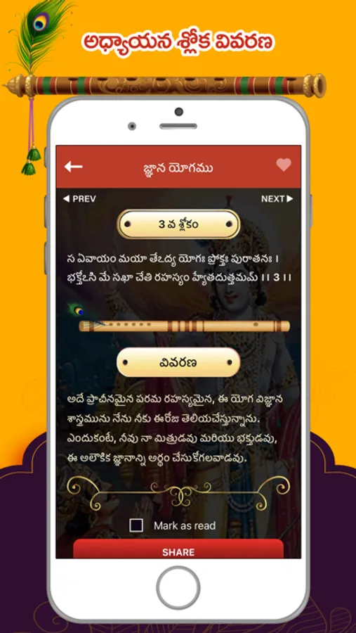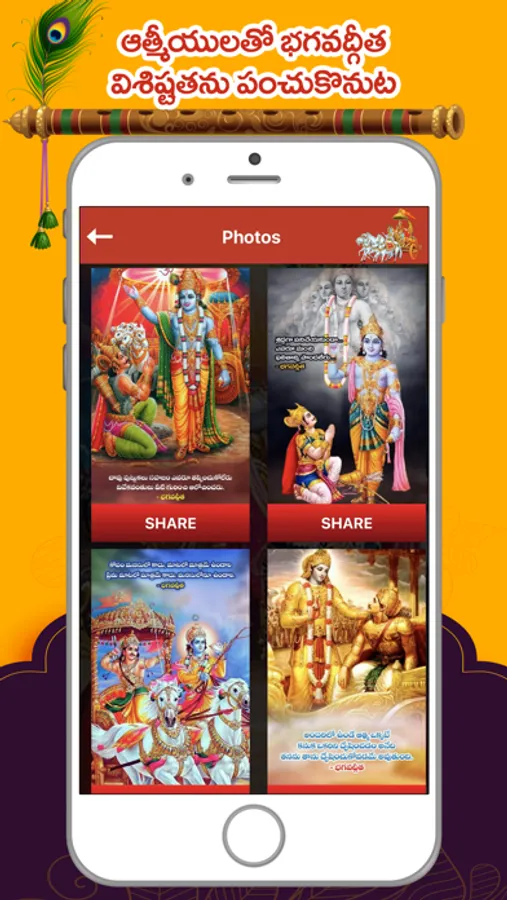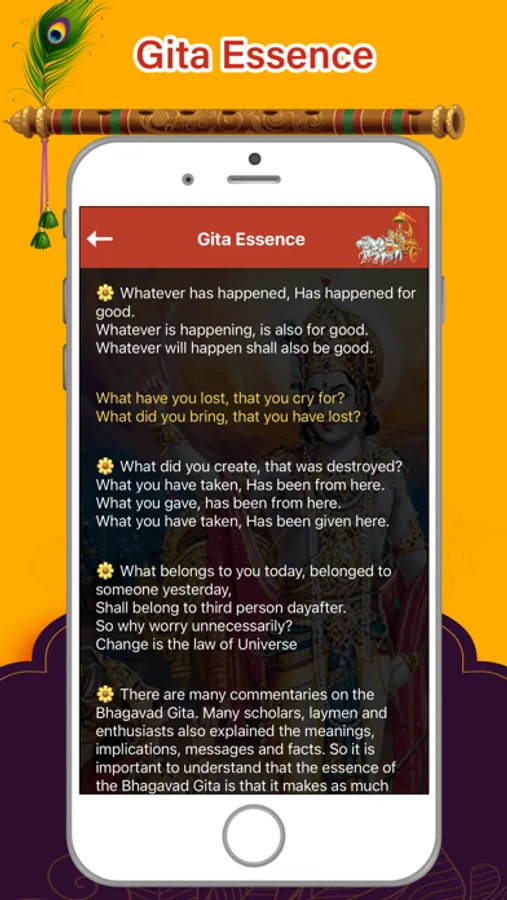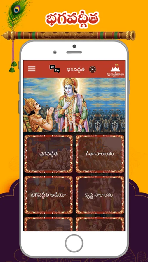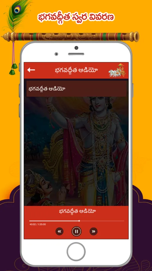 This Bhagavad Gita contains all 18 chapters with slokas with vivarana, Gita saramsam, sri krishnuni jananam, Sri krishna slokas and astotharamulu.