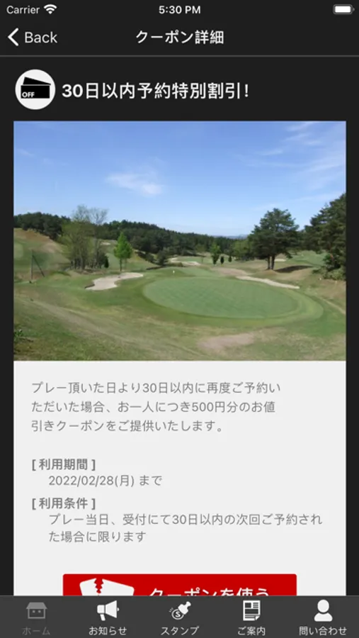 クーポン情報が更新された場合は、プッシュ通知にて更新のお知らせを行うことがあります。