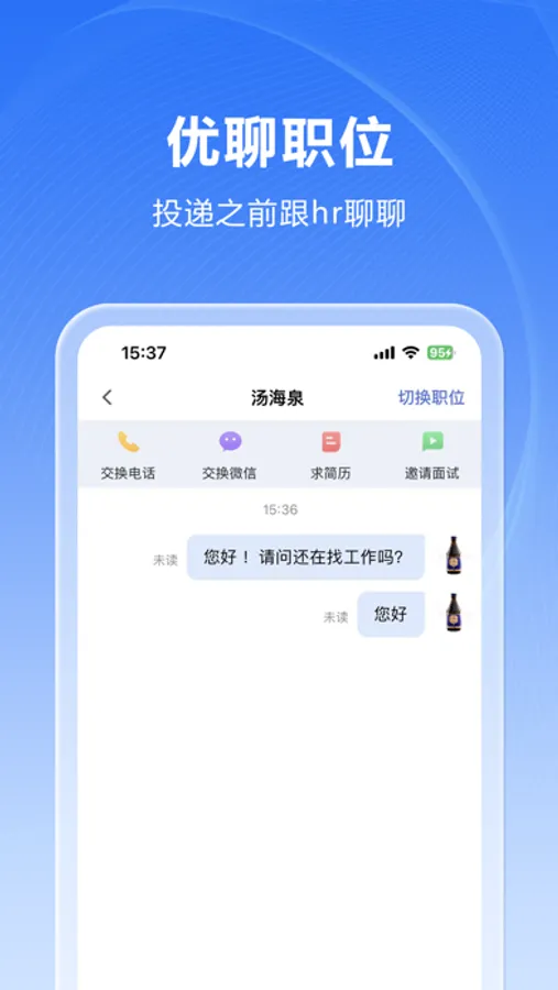 伯乐一对一人工服务、随时随地帮您解决招聘、求职难题!