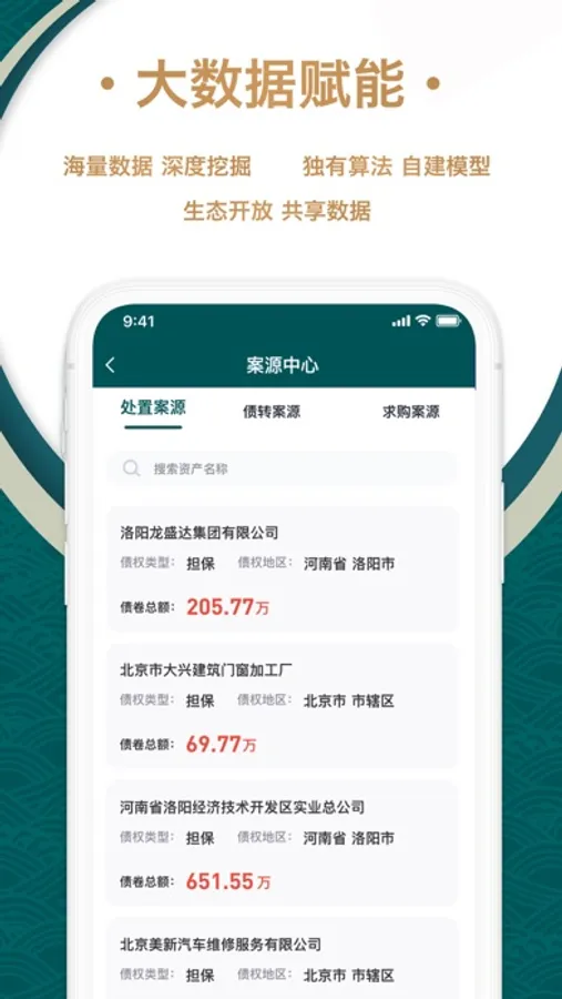 众合资管是面向资产公司的一站式不良资产处置平台,通过线下整合律所资源+线上大数据分析,帮助资产管理公司智能匹配最佳律所,加速不良资产的处置。