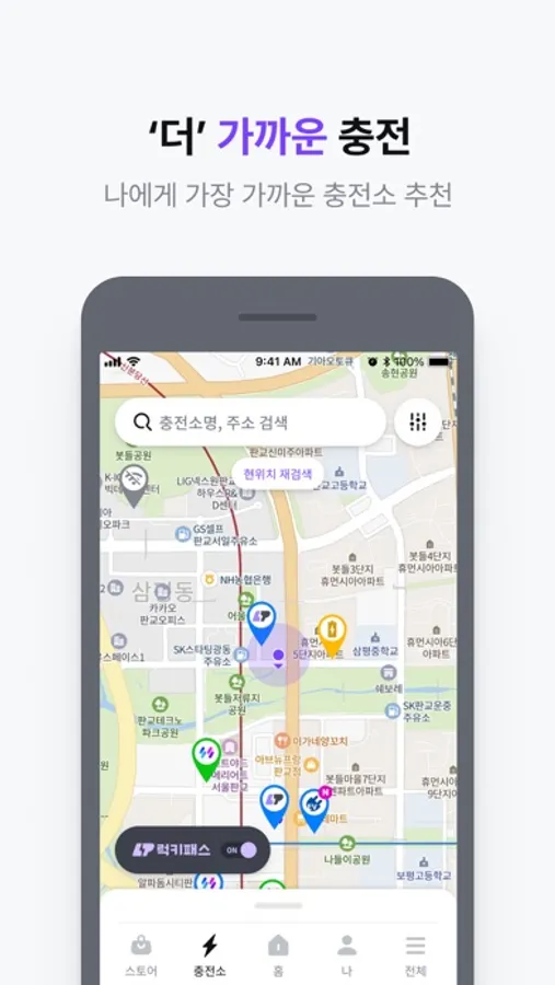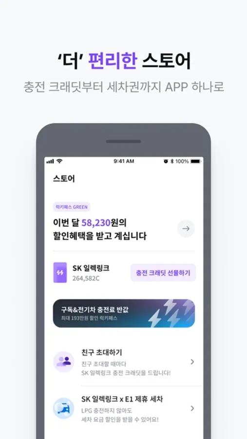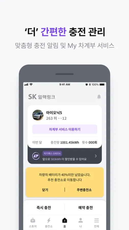 SK 일렉링크는는 더 가깝고, 더 스마트하고, 더 유쾌하고, 더 착한 전기차 충전 앱입니다.