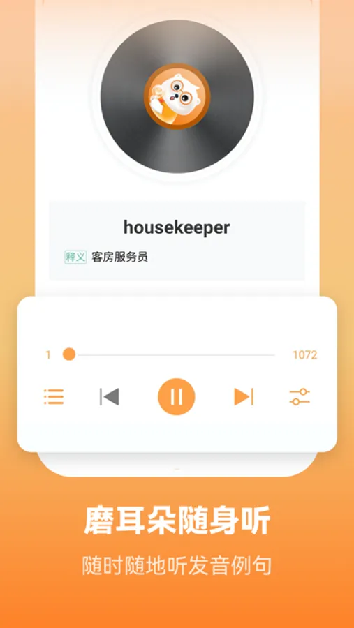 听音辨意、听音选词、听音写词、单词拼写、听音速记等专为英语学习者设计的复习方式,寓教于乐,让英语学习不再枯燥。