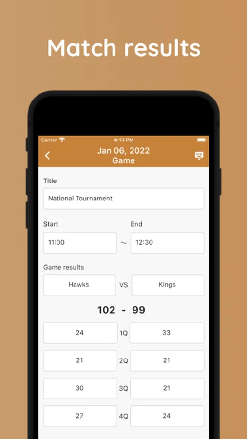 You can register your opponent, the time of the match, and the result. There is also a note section, so you can write down anything you notice during the match and use it for the next match. A photo can also be registered.