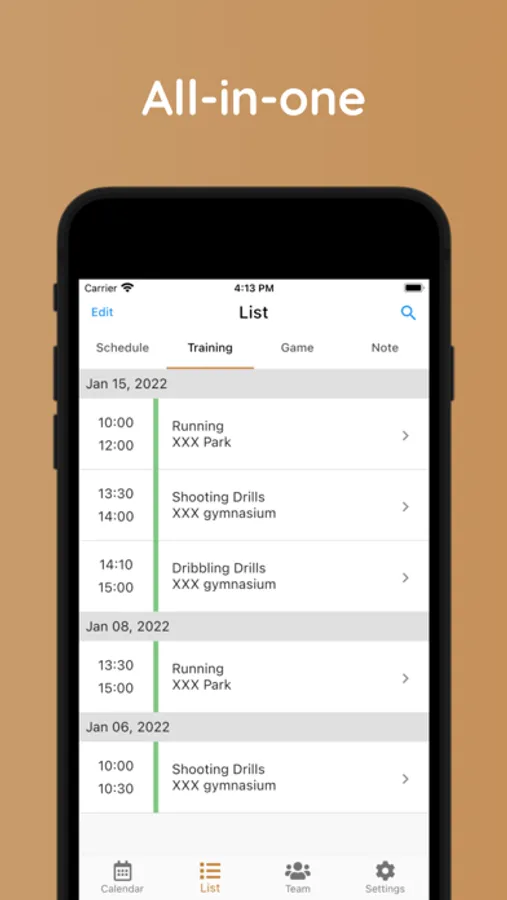 You can register your training regimen, date, time, location, and goals. A photo can also be registered.