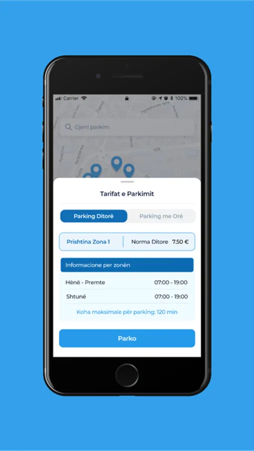 Aplikacioni PrParking, ju mundëson të gjeni lehtësisht vendet e parkimit për të parkuar makinën tuaj shpejt dhe lehtësisht. Për ti përfituar të gjitha sherbimet të tjera Ju duhet të shkarkoni aplikacionin në telefonin tuaj smart dhe të regjistroheni në këtë aplikacion duke ndjekur hapat që sugjerohen në aplikacion pasi ta keni shkarkuar atë. Rregjistrimi në këtë aplikacion ju ofron mundësinë të përfitoni shërbimet që ky aplikacion ofron. Pagesa per parkim mund të bëhet duke përdorur një kartë krediti ose debiti.