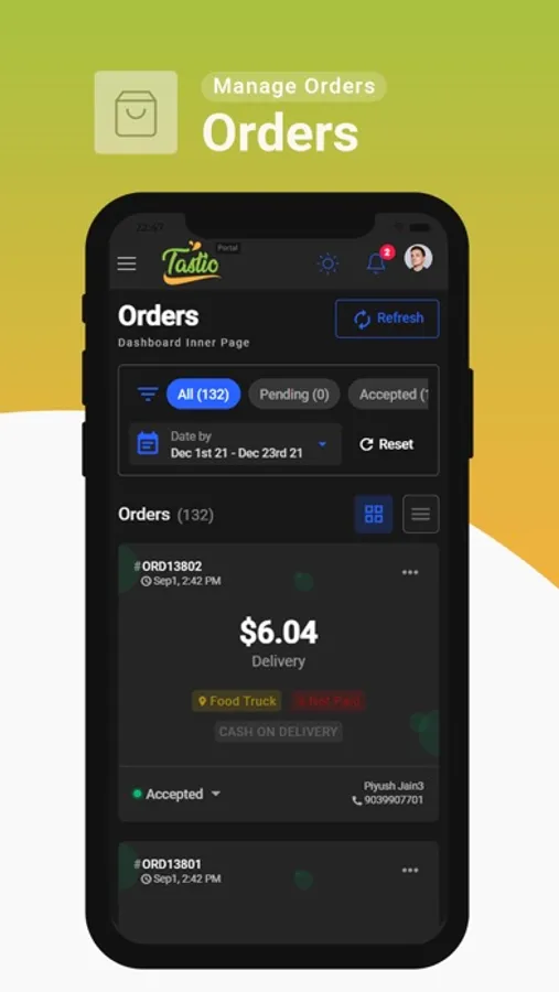 Tastio Admin Portal allows restaurant owners to look at their sales dashboard, how many people use their system, and perform marketing campaigns all through one area.
