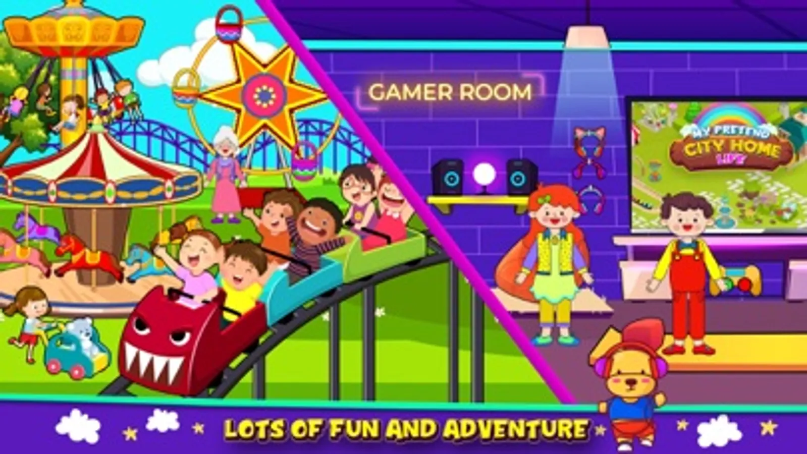 Let’s create your own fun stories about pretend city life and play this my family house life roleplay game. My pretend city home town life is a play home of roleplaying family games where you can explore your house life autism stories and interact with anything you want in this city story dollhouse game. Visit different locations of your wonderland home town and explore the princess dream play home where every day of your city life is going to become a guardian in pretend play family games.