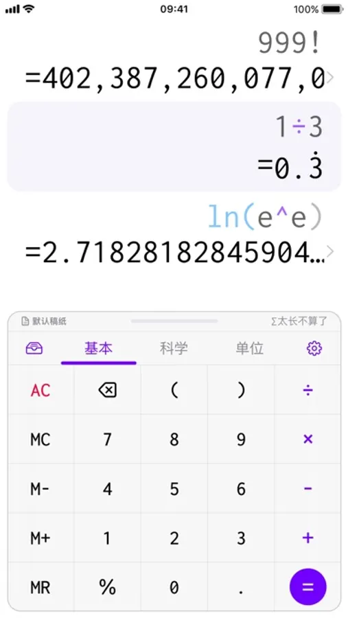 面对情景问题,它带来了名为“稿纸”的功能,每一张“稿纸”都存储着独立的设置和计算历史。