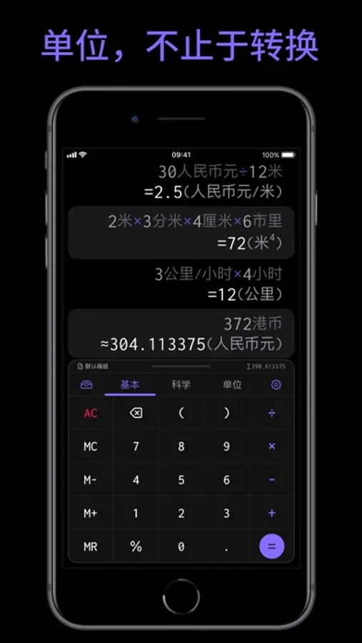 面对单位难题,它先是知道要将你输入的单位自动转换为内定的基本单位,再去计算,确保单位统一,你只要再设定一下最终结果的单位,便可算出你想要的结果。