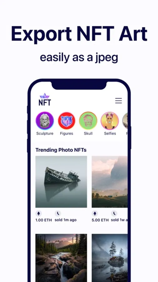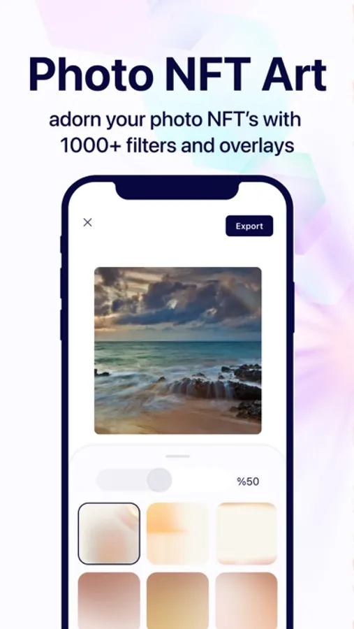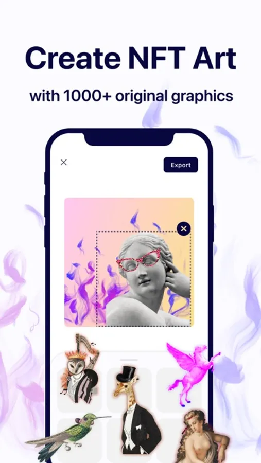 Upload any of your images from your Camera Roll. Then go through thousands of elements and edit your photo NFT Art. Export your NFT Art. Becoming an NFT photography creator has never been this easy.