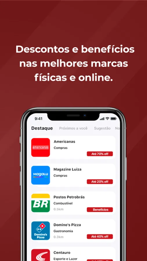 A Foco Brasil te dá descontos em compras online e em lojas físicas de todo o Brasil. Com o app do nosso Clube de Vantagens, você acessa as principais marcas do país e utiliza o desconto na hora de pagar, de maneira rápida e sem custo.