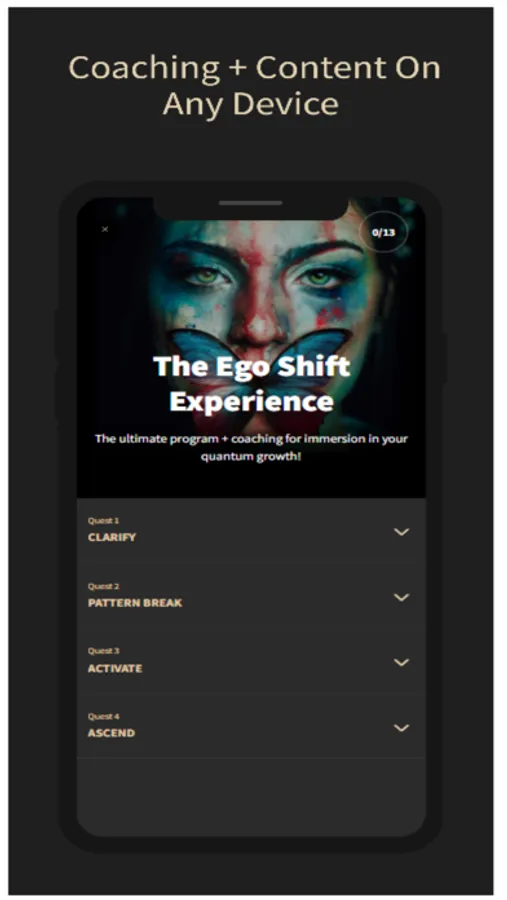 3. The Ego Shift Experience Program and Coaching Container: Option 1 and 2 + Full Access to Courses, Masterclasses, Activation Programs, and Live Collective Coaching Zoom Calls with Jena (Private coaching UPGRADE available...space is limited)
