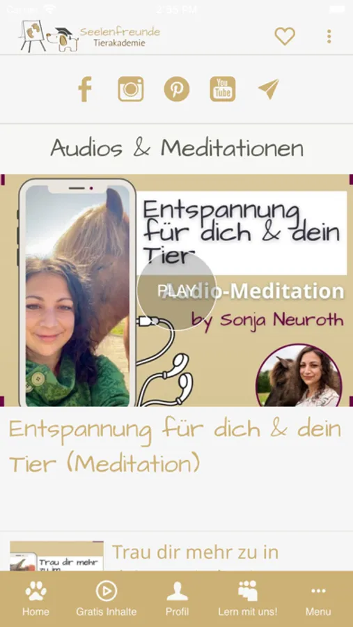 Erhalte Zugriff auf unsere gratis Inhalte wie zB geführte Meditationen oder Übungen zur Tierkommunukation und höre dir unseren Podcast zum Thema Persönlichkeitsentwicklung mit deinem Tier an.